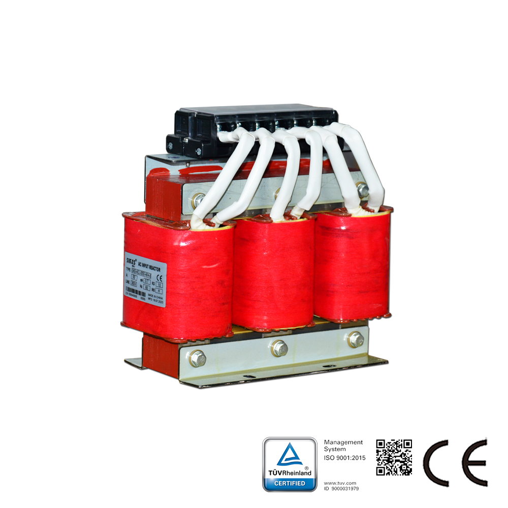 وصف مفاعل الخط: تُركب سلسلة مفاعلات الخط SKS-ACL على التوالي مع المعدات الكهربائية لإدخال معاوقة محكمة ومحددة إلى الدائرة الكهربائية المترددة. تُطبق هذه السلسلة على جانب مدخل محركات التيار المتردد لكبح جهد التيار الدفقي، وتقليل التيار الدفقي والتيار الذروي، وتحسين معامل القدرة الفعلي، وكبح التوافقيات الشبكية، وتحسين شكل موجة تيار الخرج. يُعرف مفاعل خط التيار المتردد أيضًا باسم مفاعل الإدخال أو ملف التيار المتردد.