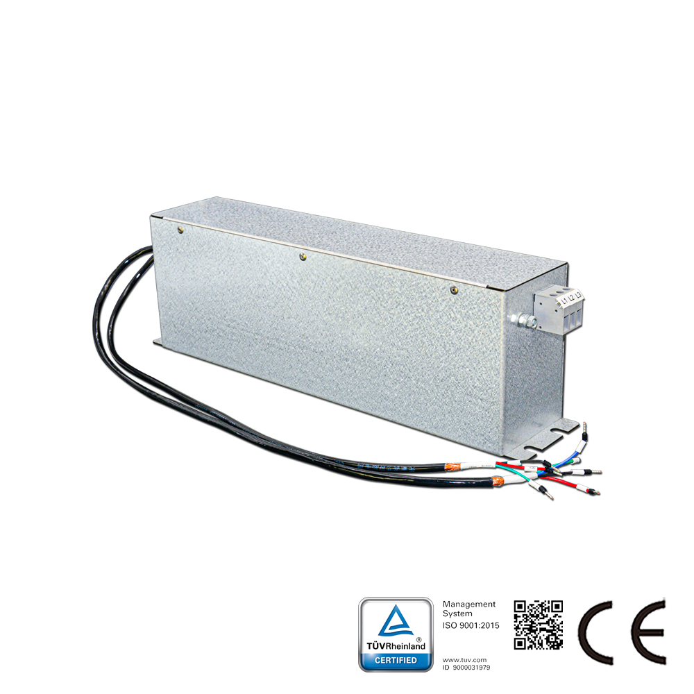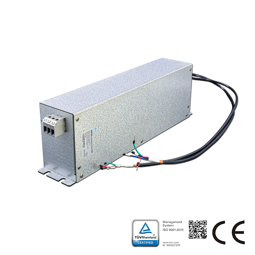 مرشح الموجة الجيبية بالإضافة إلى التوافقية الكهرومغناطيسية – الوصف: هذا مرشح موجة جيبية ومرشح خرج توافقية كهرومغناطيسية لمحركات القيادة مع وصلة تيار مستمر. سيقضي على التشويش بين الطور والأرض. يعمل مرشح الموجة الجيبية العادي فقط بين الأطوار. باستخدام مرشح الموجة الجيبية المحسن، يمكنك استخدام كابلات محرك غير محمية بأداء توافقي كهرومغناطيسي جيد. يمكنك استخدام كابلات المحرك القديمة مع البقاء ضمن فئة التوافقية الكهرومغناطيسية C2. الخيار الأمثل لتوفير الطاقة للمحركات الحالية.