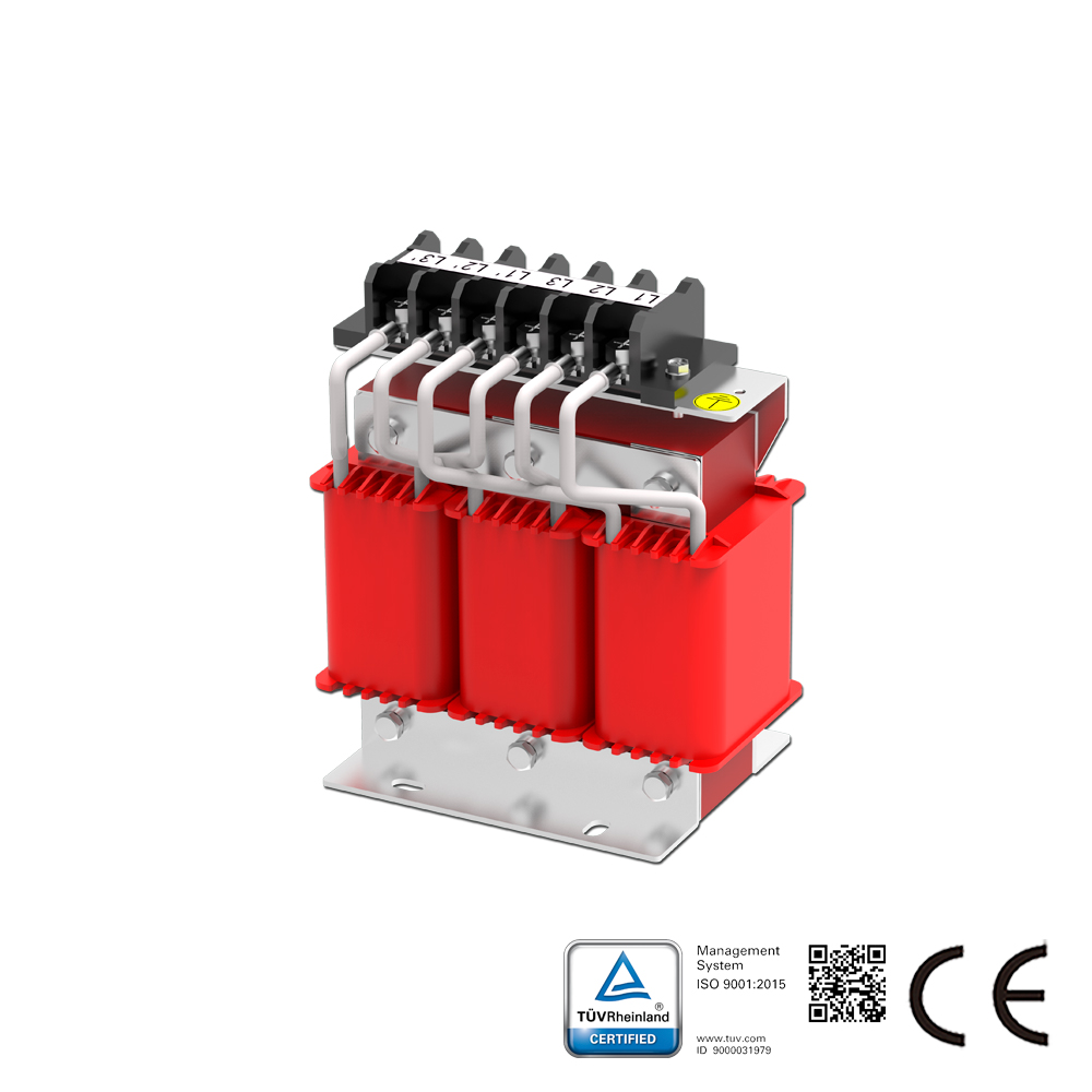 وصف مفاعل الخط: تُركب سلسلة مفاعلات الخط SKS-ACL على التوالي مع المعدات الكهربائية لإدخال معاوقة محكمة ومحددة إلى الدائرة الكهربائية المترددة. تُطبق هذه السلسلة على جانب مدخل محركات التيار المتردد لكبح جهد التيار الدفقي، وتقليل التيار الدفقي والتيار الذروي، وتحسين معامل القدرة الفعلي، وكبح التوافقيات الشبكية، وتحسين شكل موجة تيار الخرج. يُعرف مفاعل خط التيار المتردد أيضًا باسم مفاعل الإدخال أو ملف التيار المتردد.