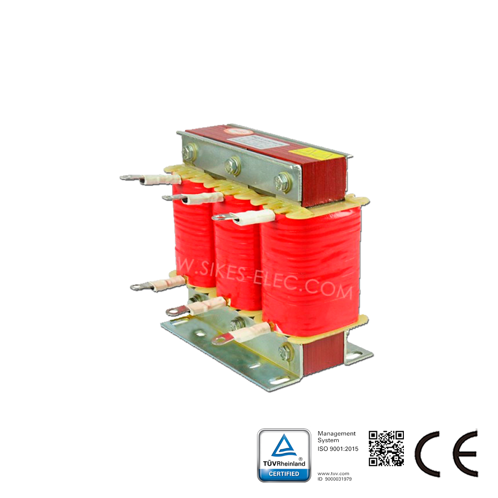 تُركب سلسلة مفاعلات الحمل SKS-OCL على التوالي مع المعدات الكهربائية لإدخال معاوقة مضبوطة محددة إلى الدائرة الكهربائية المترددة. تُطبق هذه السلسلة على جانب خرج محركات التيار المتردد لكبح جهد التيار الدفقي، وتقليل التيار الدفقي والتيار الذروي، وتحسين معامل القدرة الفعلي، وكبح التوافقيات الشبكية، وتحسين شكل موجة تيار الخرج. يُعرف أيضًا باسم مفاعل الخط أو مفاعل الخرج.