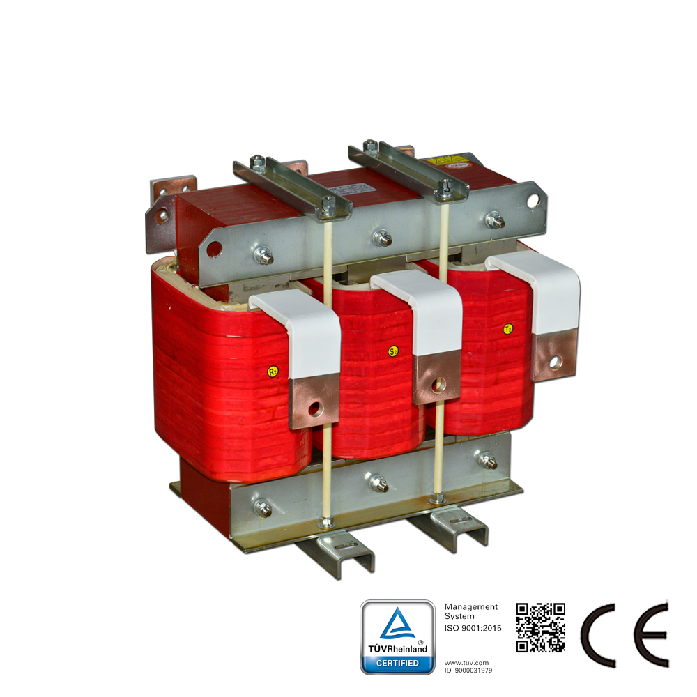 وصف مفاعل الخط: تُركب سلسلة مفاعلات الخط SKS-ACL على التوالي مع المعدات الكهربائية لإدخال معاوقة محكمة ومحددة إلى الدائرة الكهربائية المترددة. تُطبق هذه السلسلة على جانب مدخل محركات التيار المتردد لكبح جهد التيار الدفقي، وتقليل التيار الدفقي والتيار الذروي، وتحسين معامل القدرة الفعلي، وكبح التوافقيات الشبكية، وتحسين شكل موجة تيار الخرج. يُعرف مفاعل خط التيار المتردد أيضًا باسم مفاعل الإدخال أو ملف التيار المتردد.