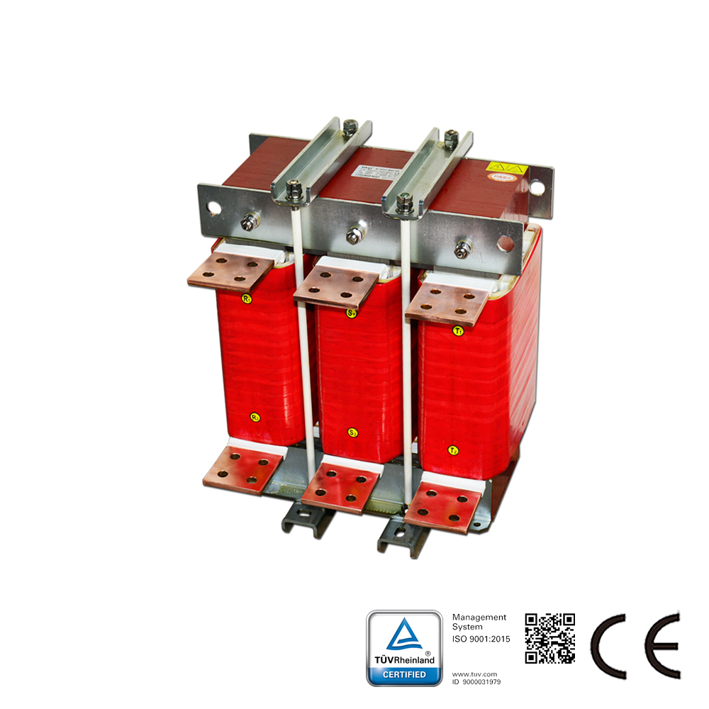 وصف مفاعل الخط: تُركب سلسلة مفاعلات الخط SKS-ACL على التوالي مع المعدات الكهربائية لإدخال معاوقة محكمة ومحددة إلى الدائرة الكهربائية المترددة. تُطبق هذه السلسلة على جانب مدخل محركات التيار المتردد لكبح جهد التيار الدفقي، وتقليل التيار الدفقي والتيار الذروي، وتحسين معامل القدرة الفعلي، وكبح التوافقيات الشبكية، وتحسين شكل موجة تيار الخرج. يُعرف مفاعل خط التيار المتردد أيضًا باسم مفاعل الإدخال أو ملف التيار المتردد.