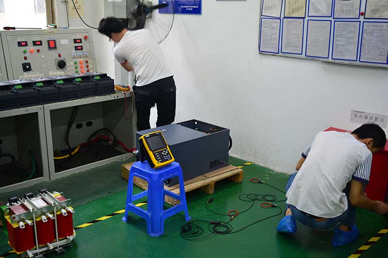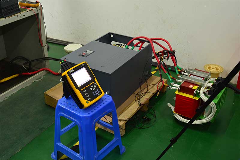 فيديو اختبار مرشح التوافقي السلبي من Sikes. الطاقة المقدرة: 110 كيلووات، تشويه التوافقيات الكلي ≤7.5% عند حمل 60%.
